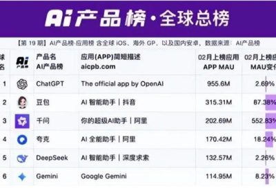 快科技3月3日消息,据媒体报道,AI产品榜最新发布的全球AI应用数据显示,ChatGPT、豆包和千问位列MAU(月活用户数)前三名。 其中,千问以2.03亿MAU跻身全球第三大AI…